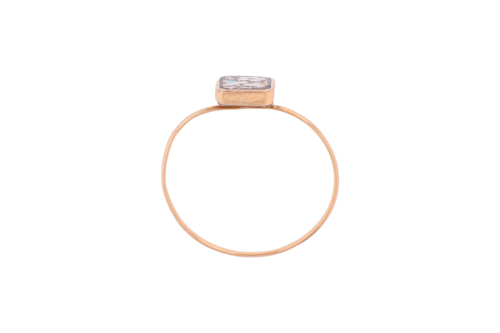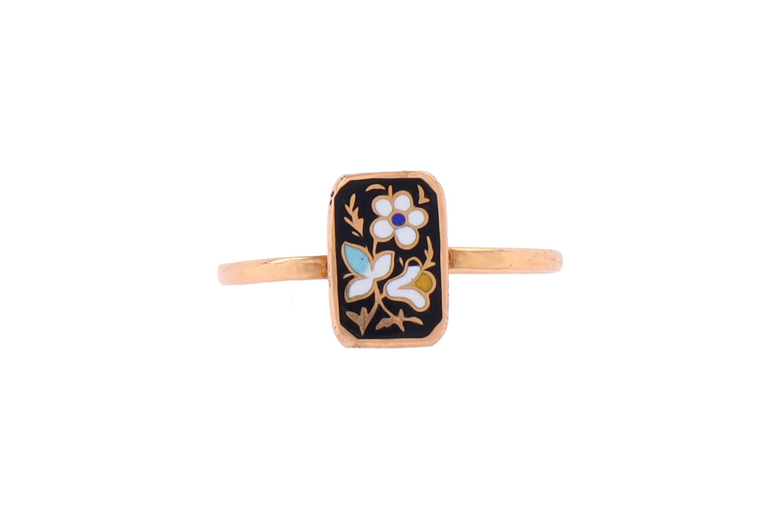 Bague en or rose ancienne avec un joli décor floral en émail multi-couleurs.