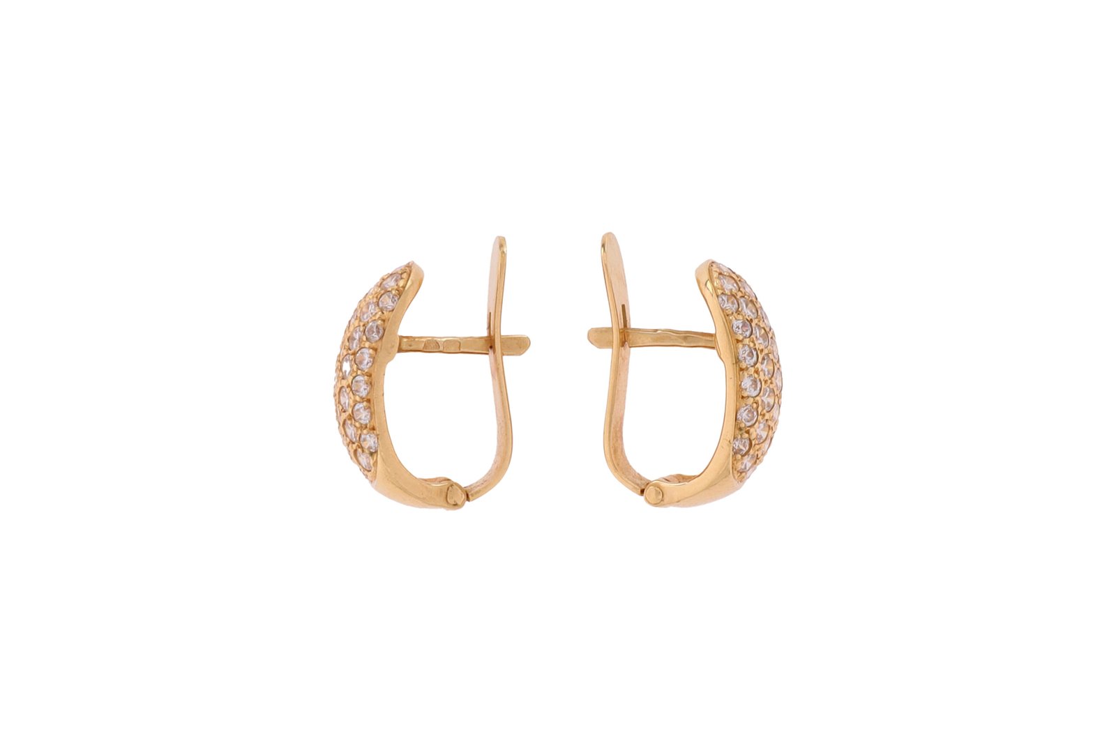 Boucles d’oreilles en or jaune 18 carats avec pavage rubis et diamants.