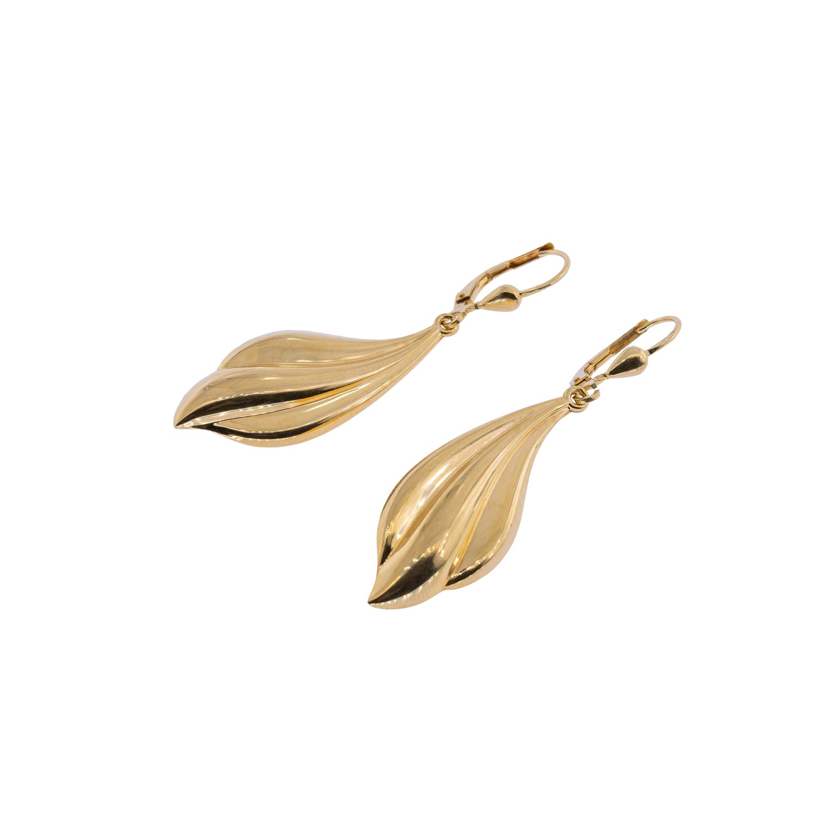Boucles d’oreilles en or jaune 18 carats avec pavage rubis et diamants. Marque Guy Laroche.