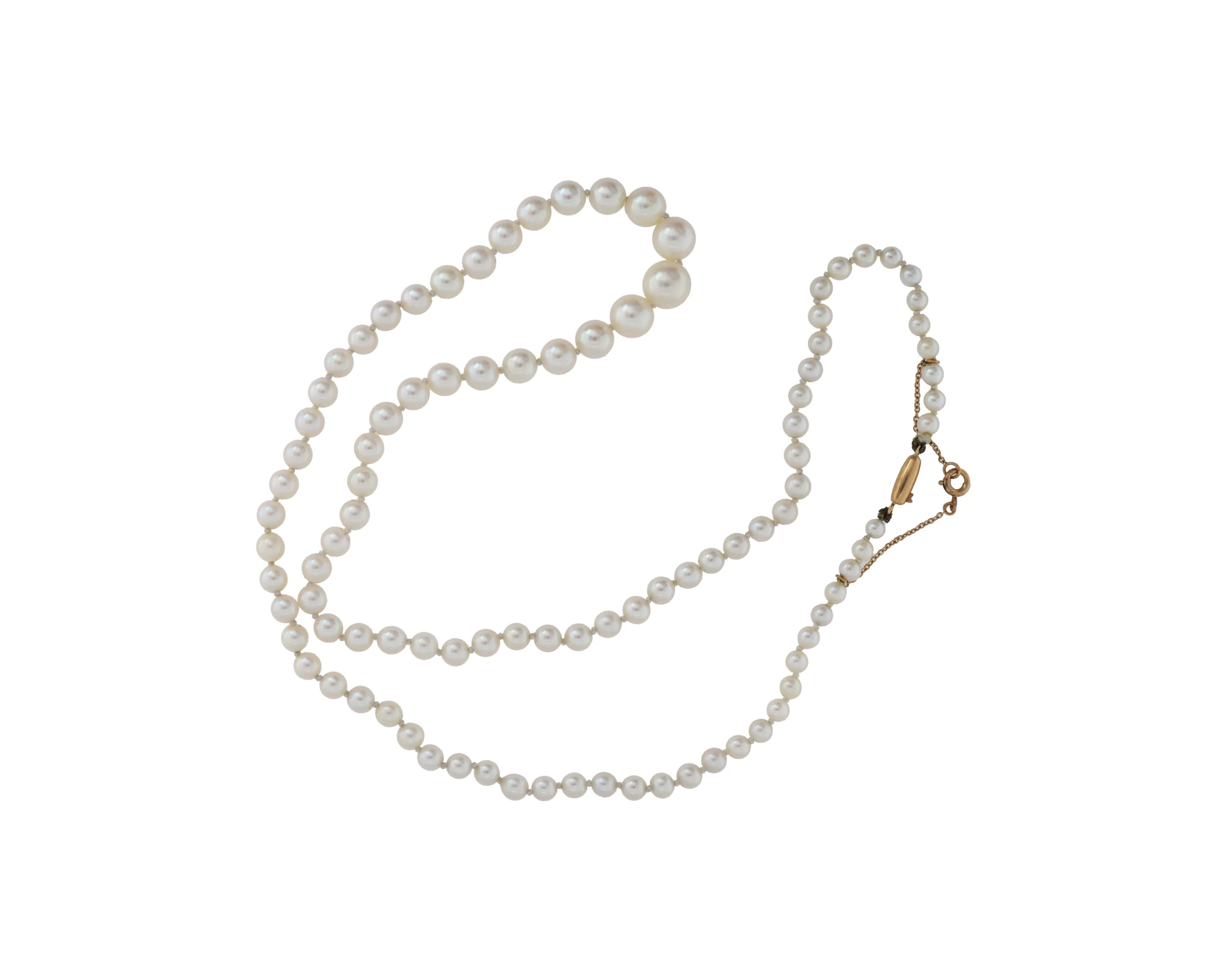 Collier de 98 perles de cultures éclat rosé avec fermoir olive imperdable et chaine de sécurité en or jaune.