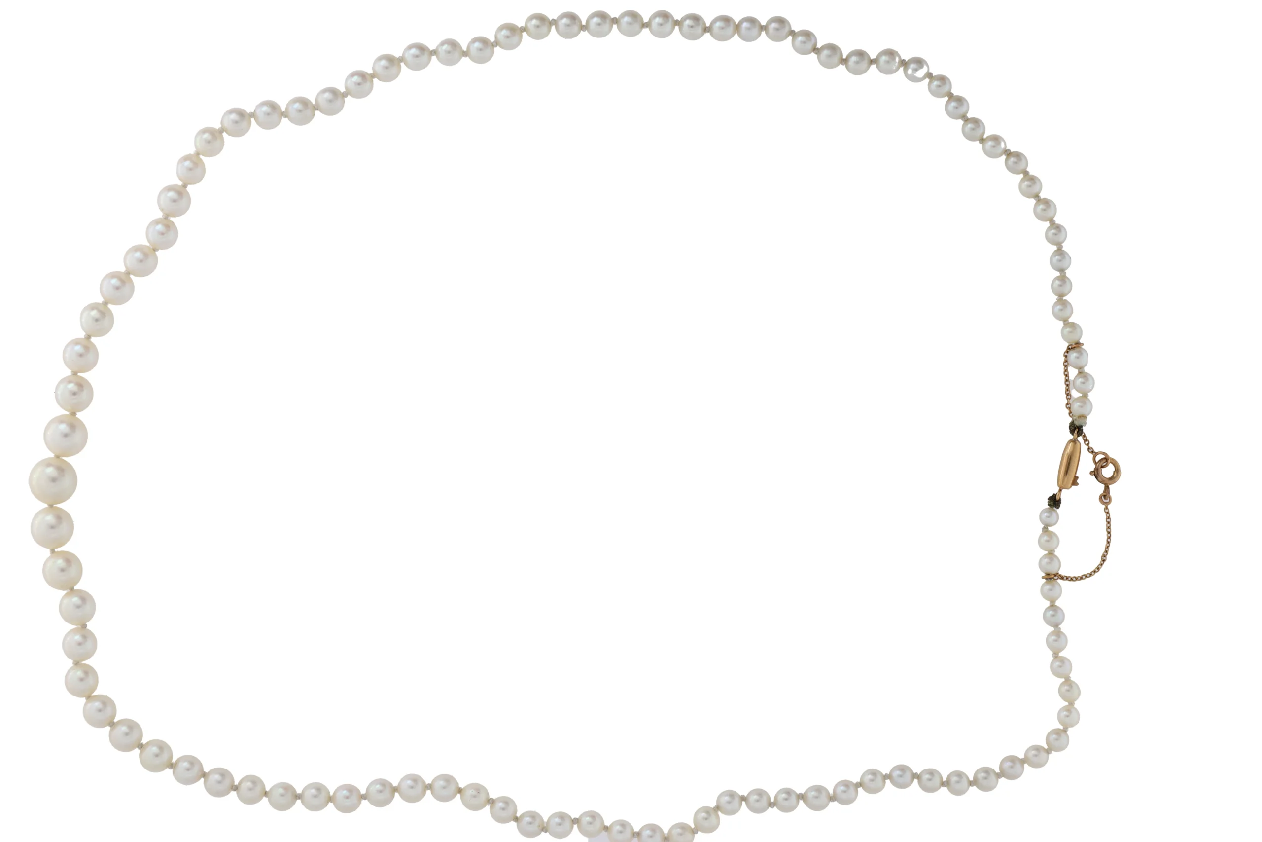 Collier de 98 perles de cultures éclat rosé en chute, fermoir olive cannelé imperdable et chaine sécurité